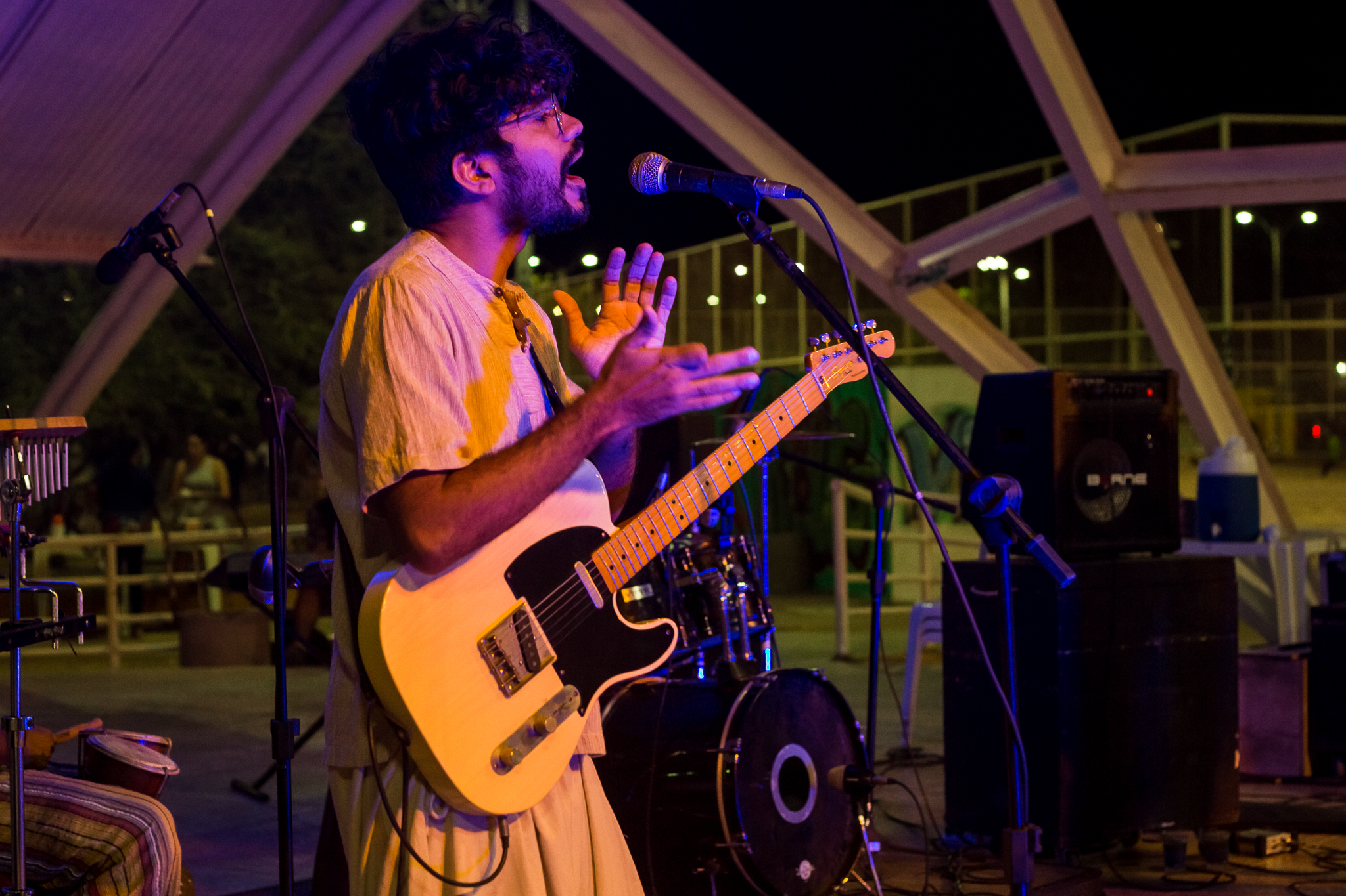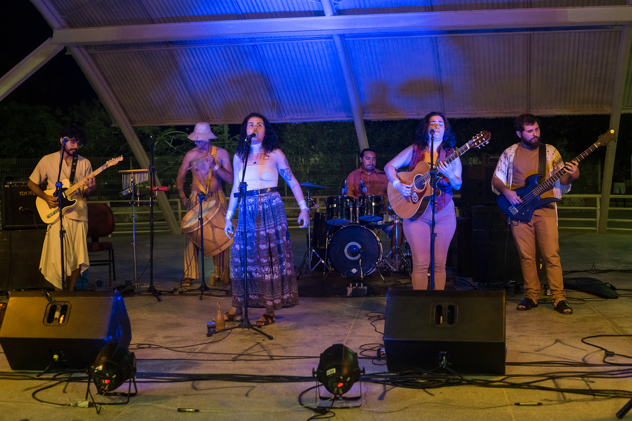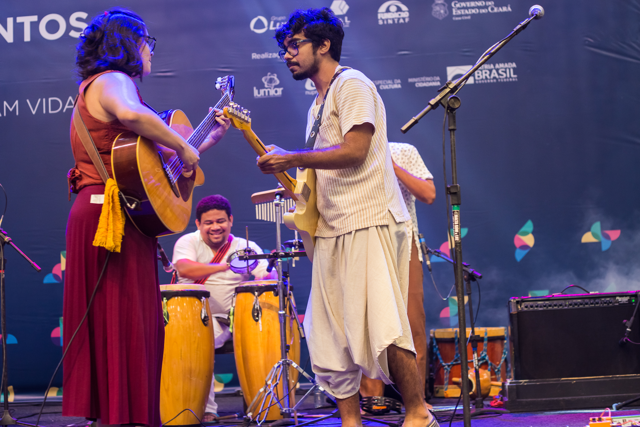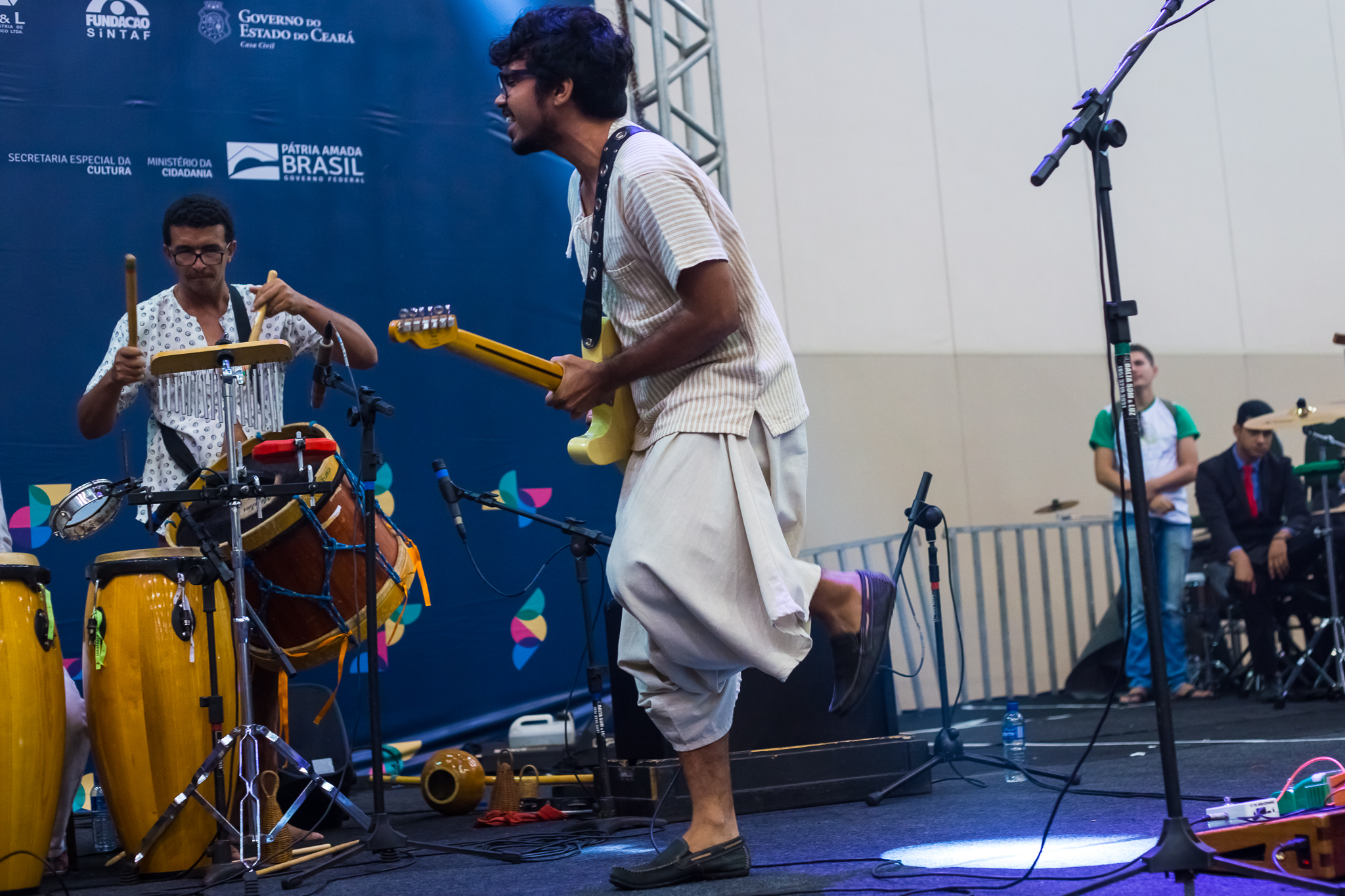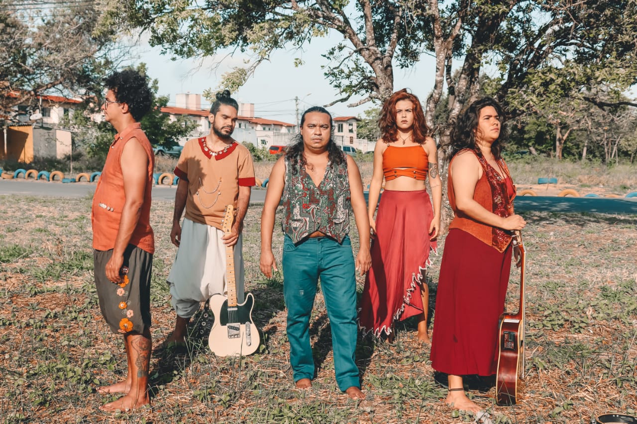 influências. O primeiro a agregar é o até então guitarrista e arranjador Jefferson Juan que trouxe uma pegada regional rock pro projeto que fluiu mais ainda com a entrada do atual baixista Leandro Valverde. Com toda essa fusão com os ritmos nordestinos , o mpb e o rock, surgiu a necessidade de introduzir instrumentos percussivos como a alfaia, bongôs, berimbau, triângulo, pandeiro e que é muito bem reproduzida com a chegada do percussionista maranhense Herison Maranhão e do grande historiador e baterista Pedro Carvalho. O resultado é uma rítmica marcante e envolvente com uma poética transparente e de linguagem contemporânea,