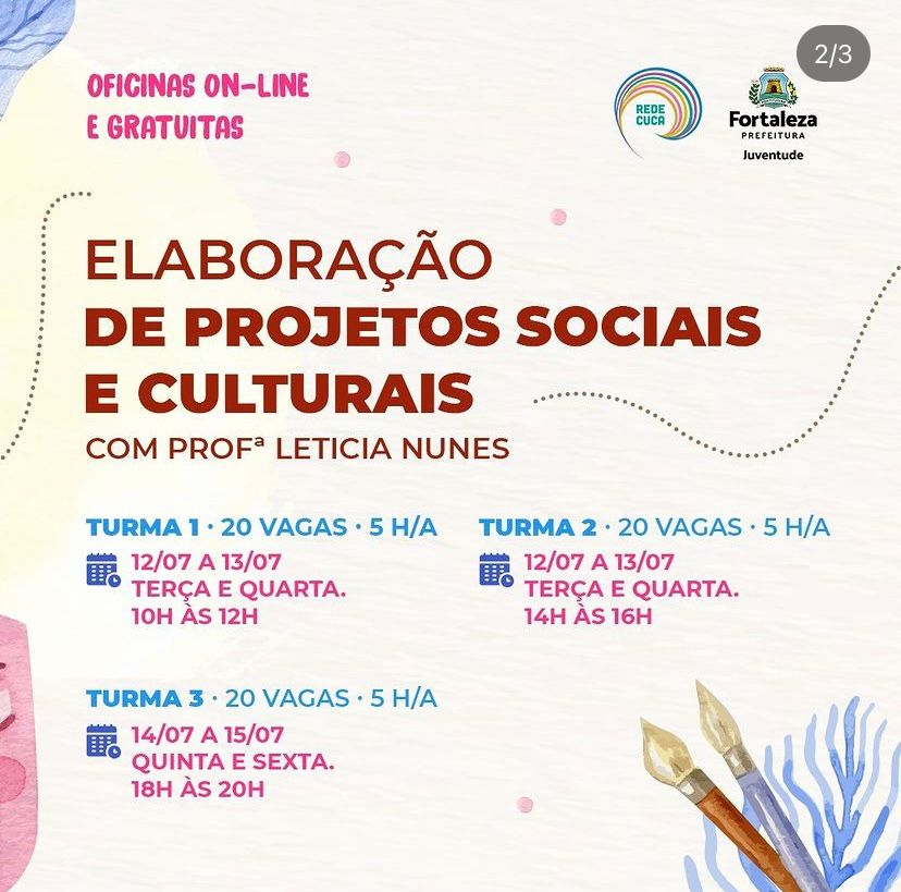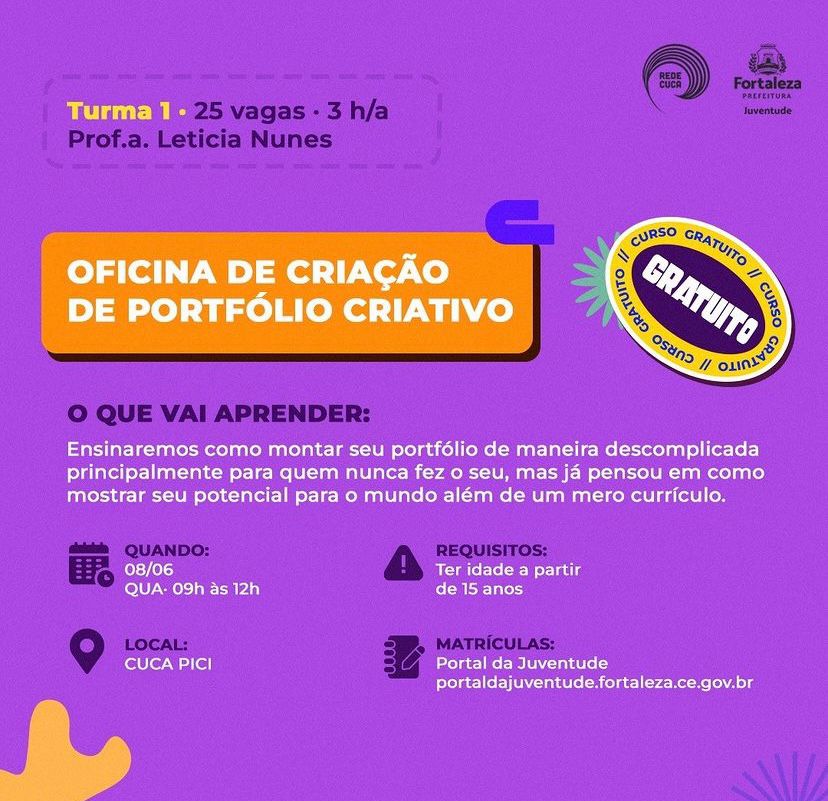 Produtora cultural, fotógrafa e educadora popular. Minha trajetória passa pela criação e realização de projetos nas áreas do audiovisual, da educação e da cultura popular, sempre com um olhar atento para os territórios e as juventudes.Ao longo dos últimos anos, atuei em diferentes frentes: como produtora executiva e artística, fotógrafa, comunicadora, brincante e ministrante de oficinas. Tenho experiência com elaboração de projetos, formação de jovens, edição de vídeos e cobertura de eventos culturais — especialmente através de iniciativas desenvolvidas com a Rede Cuca, na qual atuei como Assistente de Comunicação e de projetos contemplados por editais como a Lei Paulo Gustavo e a Lei Aldir Blanc.